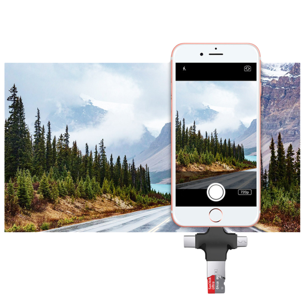 4-in-1-Lesegerät für Micro-SD-Karten Zum Anzeigen von Fotos und Videos auf Ihrem Smartphone und PC